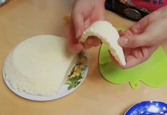 После того, как отрезали пластик сыра, то он довольно-таки плотный и упругий, держит форму.