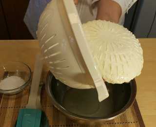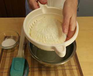 Оставляем его на 25 минут. Затем аккуратно переворачиваем, солим и оставляем ещё на 25 минут. Сыр будем переворачивать ещё два раза.
