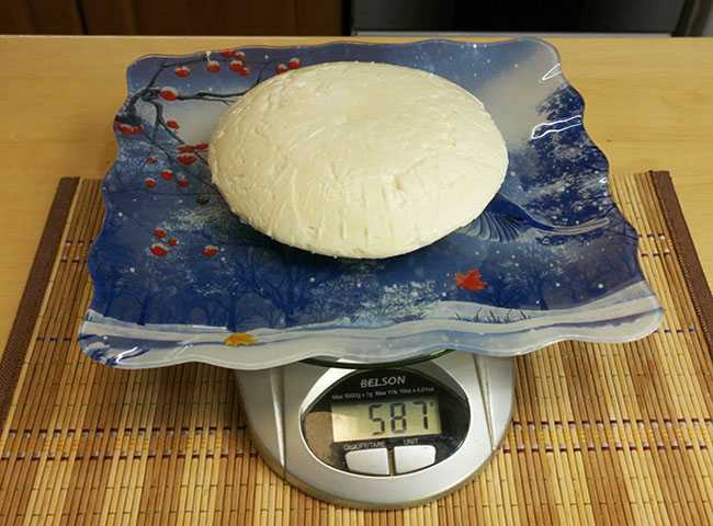 Всего из 3-х литров молока получилось 590гр творога.