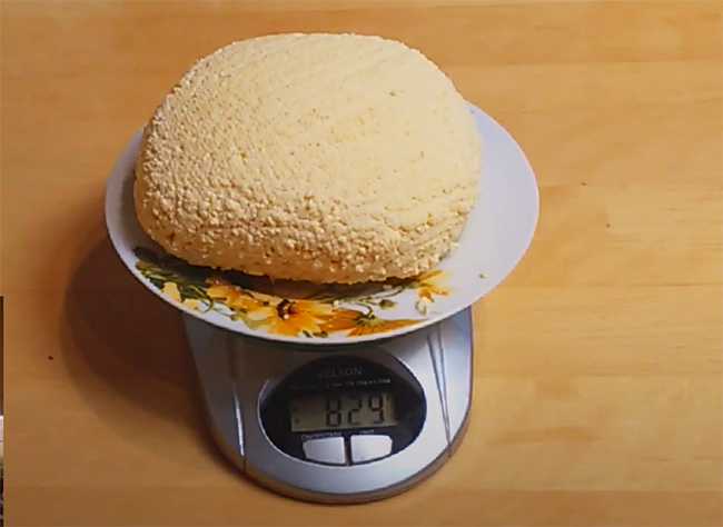 Всего из данных ингредиентов получилось 830 грамм чистого сыра.