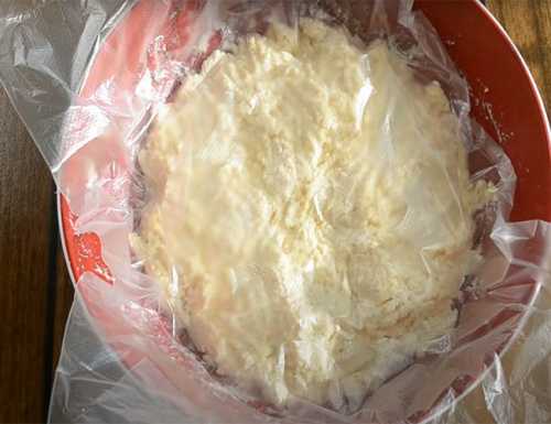 15 минут прошли, тесто слегка увеличилось в размере, манка набухла, продолжим готовить вареники.