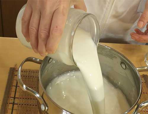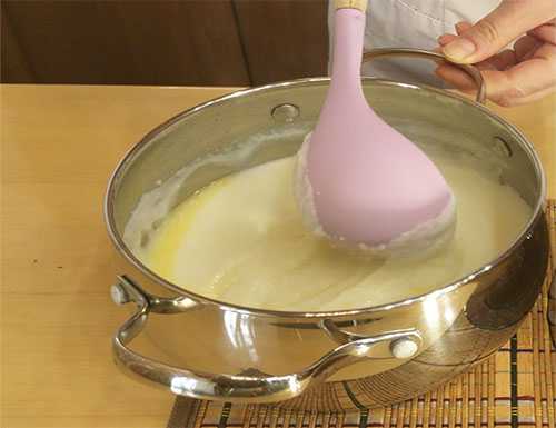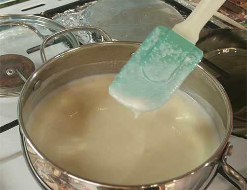 Я готовлю на средней конфорке, включаем огонь на полную мощность и постоянно помешивая, доводим жидкость до первого закипания.