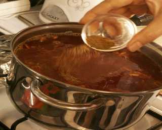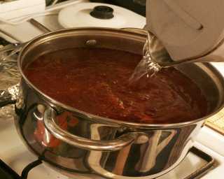 Кастрюлю ополаскиваем теплой водой, переливаем в неё бульон и пока отставляем в сторону.