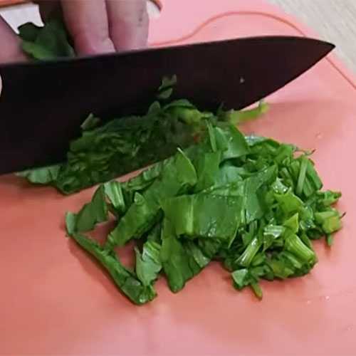 Щавель промываем холодной водой, шинкуем средними фрагментами и отправляем пока в сторону.