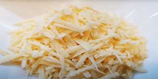 Сыр натираем на крупной тёрке, в этот салат подойдёт как твердый, так и мягкий сыр – кому что нравится.