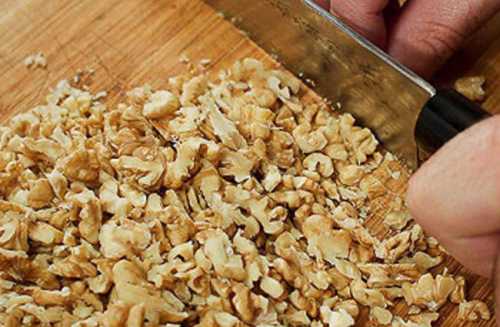 Грецкие орехи обжариваем на сковороде, остужаем, измельчаем при помощи блендера или ножа.