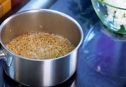 Гречку перебрать, засыпаем в кипящую, слегка подсоленную воду, варим, с момента закипания 5-6 минут, до полуготовности.