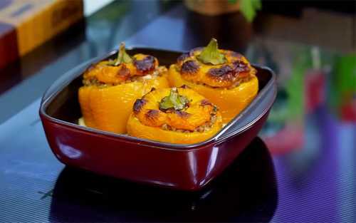 перец фаршированный фаршем, баклажанами и сыром.