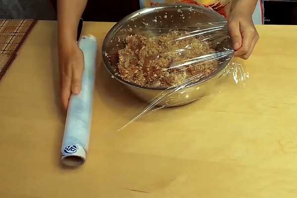 Миску с мясом накрываем пленкой и отправляем в холодильник на 10-12 часов, но не меньше чем на 4 часа.