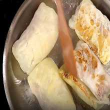 Голубцы обваливаем в муке и обжариваем на растительном масле со всех сторон.