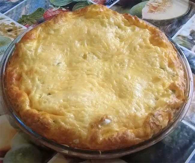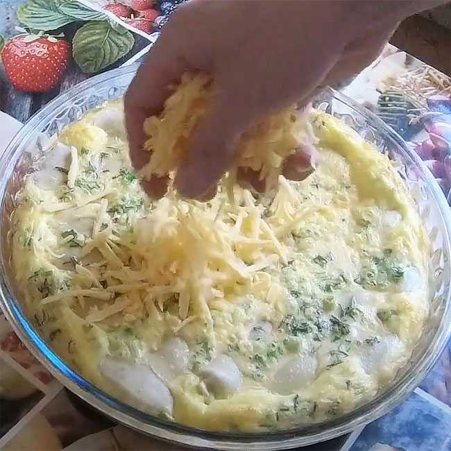 По истечении времени, форму вынимаем из духовки, посыпаем поверхность запеканки второй частью сыра и отправляем обратно в духовку на 10 минут при температуре 200 градусов до румяной корочки.