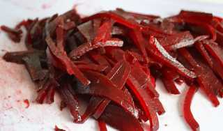 Затем очищаем их от кожуры и нарезаем на тонкие брусочки.