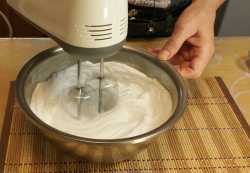 Белки взбили до густой пены, но не до стойких пиков и пока отставляем их в сторону.