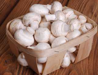 Шампиньоны вынимаем из банки и нарезаем мелкими кубиками.
