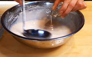 В разогретую сковороду выливаем 1 половник теста и быстрыми круговыми движениями равномерно распределяем тесто по всей поверхности.