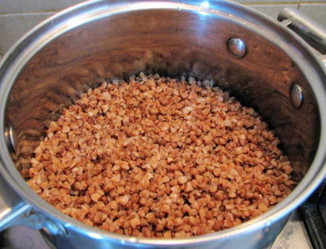 Гречку промываем водой и обжариваем на сухой сковороде до лёгкого запаха.