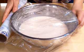 Миску затягиваем пищевой пленкой и оставляем при комнатной температуре на 45 минут.