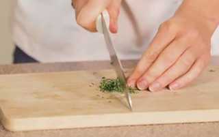 Листики тимьяна отделяем от стебельков и очень мелко их измельчаем.