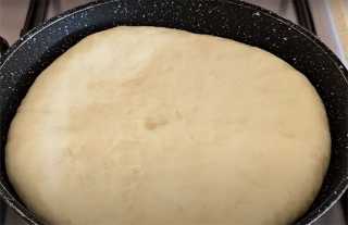 Подготовленное тесто перекладываем в просторную миску, накрываем плёнкой или крышкой, полотенцем и оставляем на 1 час в тёплом месте, пусть подойдёт.