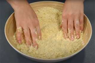 Затем аккуратно перемешиваем всё руками в мелкую крошку.