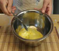 В отдельную миску выкладываем размягченное масло и при помощи миксера взбиваем его в течении 3 минут.