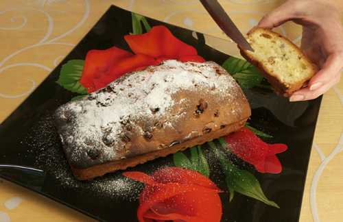 Посыпаем кекс сахарной пудрой и зовём всех к столу.
