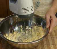 5 минут прошли, во взбитое масло добавляем по 1 ст. ложке яйца, хорошо взбиваем до полного соединения ингредиентов.