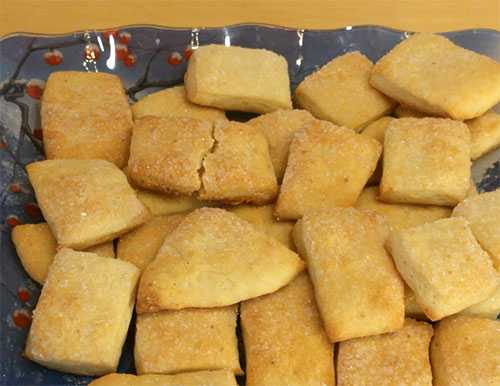 Нарезаем тесто вдоль и поперек на кусочки, нужного размере, обычно 2 см на 2 см.
