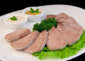 Рецепт приготовления языка отварного. Состав: язык 1 кг., лук репчатый 2 шт., морковь 1 шт., перец черный горошком, лавровый лист, чеснок, соль, горошек зелёный, зелень по вкусу.