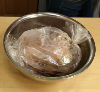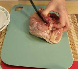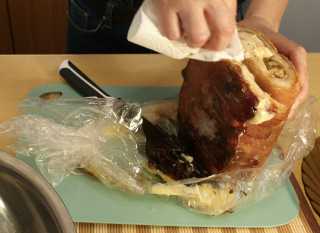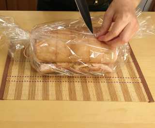 Кожа подготовлена, теперь её скручиваем в тугой рулет, при этом грудку фиксируем, чтобы она не сдвигалась с места.