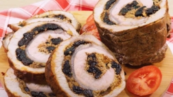деликатес, мясной рулет с черносливом и грецким орехом.