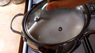 Молоко с крупой закипели через 4 минуты, убавляем огонь до самого малого, нам нужно чтобы каша очень медленно кипела. Если у Вас нет возможности убавить огонь, то воспользуйтесь рассекателем.