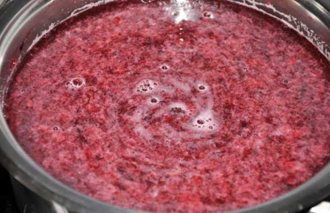 Массу процеживаем через сито, жмых выкидываем, а отвар отправляем в кастрюлю, закладываем сахар, и доводим до кипения.