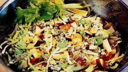 Вкусный салат из говядины, яиц, апельсин и яблок готов!
