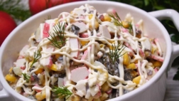 Читать далееСалат из морской капусты, кукурузы и крабовых палочек.