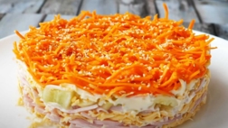 Читать далеесалат с огурцом, корейской морковкой и ветчиной.