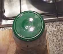 Заливаем всё кипящим рассолом, придавливаем содержимое банки, закрываем крышкой, остужаем при комнатной температуре и отправляем в холодильник на 24 часа.