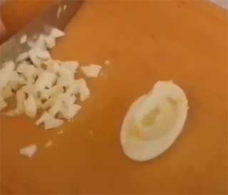 Чеснок очищаем от шелухи, промываем водой и нарезаем колечками.