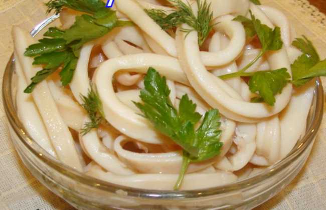 Маринованных кальмаров можно хранить в холодильнике не более 3 суток.