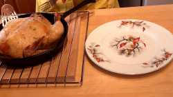 Вынимаем курицу из духовки и при помощи лопатки и вилки выкладываем курицу на тарелочку.