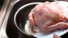 Промытую тушку промакиваем бумажным полотенцем как снаружи, так и изнутри.