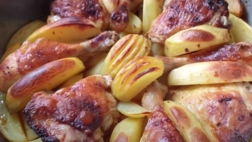 8. Запекаем курицу в предварительно разогретой духовке при температуре 180 градусов в течение 50 минут, постоянно поливая выделяющимся соком.