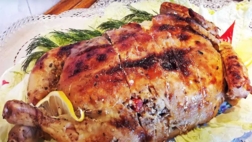 Приготовление фаршированной курицы с острым творогом в духовке.