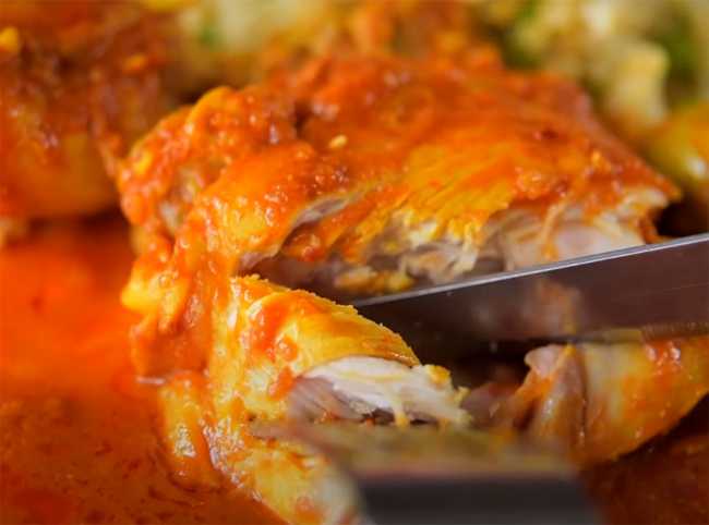 Блюдо из курицы готово, его подают с картофельным пюре или отварным рисом. Если соус останется, то его можно съесть вместе со свежим хлебом – очень вкусно.