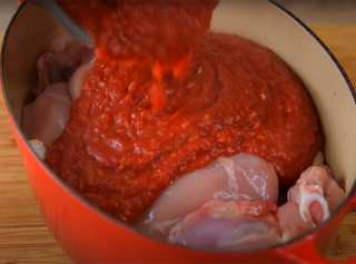 Вместо томата, можно взять томаты в собственном соку (500гр), единственное, что нужно будет к ним добавить 2 ст. ложки оливкового масла.
