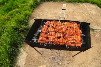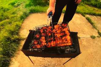 Прошло время, мясо замариновалось, идем жарить шашлык.