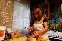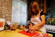 Затем кусок нарезаем на кусочки толщиной в 1,5 см, если же кусочек получился крупным, то его следует разрезать пополам.