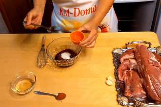 Этот рецепт интересен тем, что мясо получается очень сочное и можно не использовать кетчуп, при его поедании.