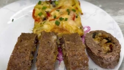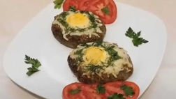 Рулет, из мясного фарша с грибами и сыром. п/о.