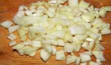 Лук очищаем от шелухи, промываем водой и нарезаем средними кубиками.